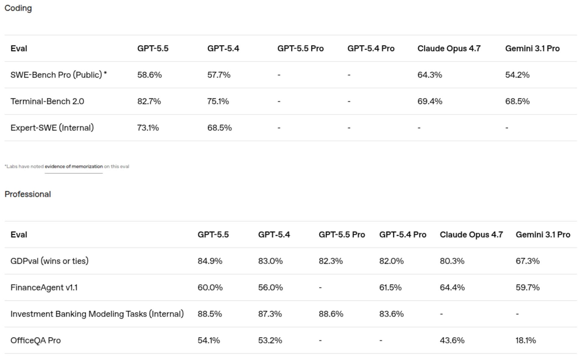 GPT-5.5 呢,4 月 23 号发的,OpenAI 定位是「迄今最智能最直觉的模型」,重点在 Agentic 自主执行上。